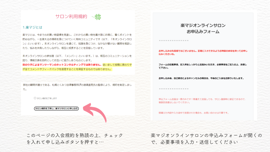 楽マジとは、今までのお買い物習慣を見直し、これからの買い物を最大限にお得に、賢くポイントを貯めながら、一生使えるお得術を身につけていく有料コミュニティです(以下、「本オンラインサロン」といいます)。本オンラインサロンを通じて、知識を身につけ、なかなか聞けない質問を相談したり、悩みを共有したりしながら、相互に成長することを目指しています。